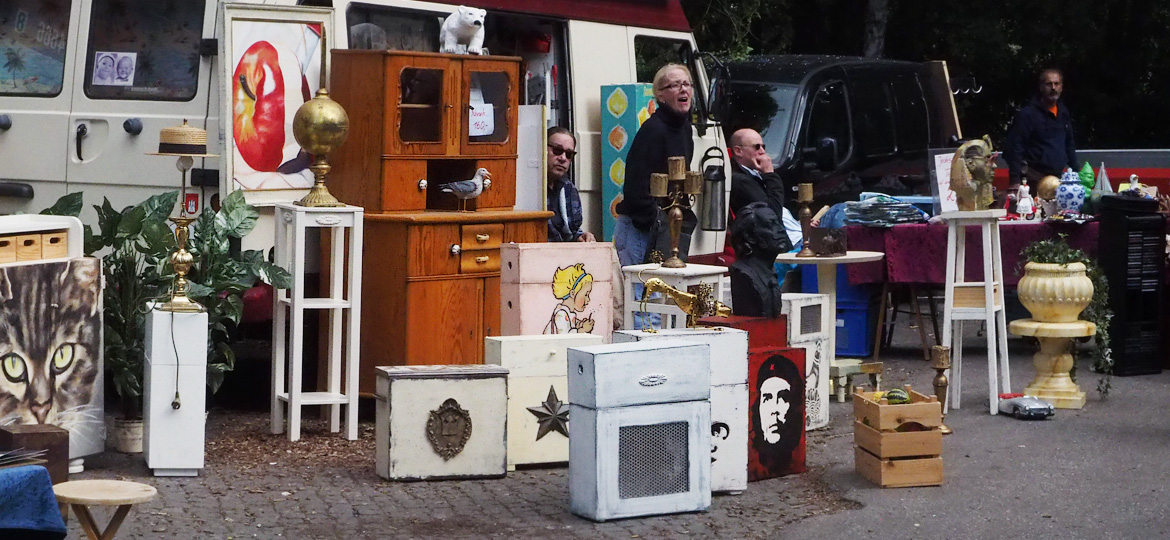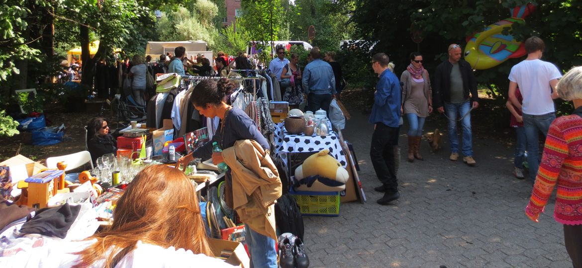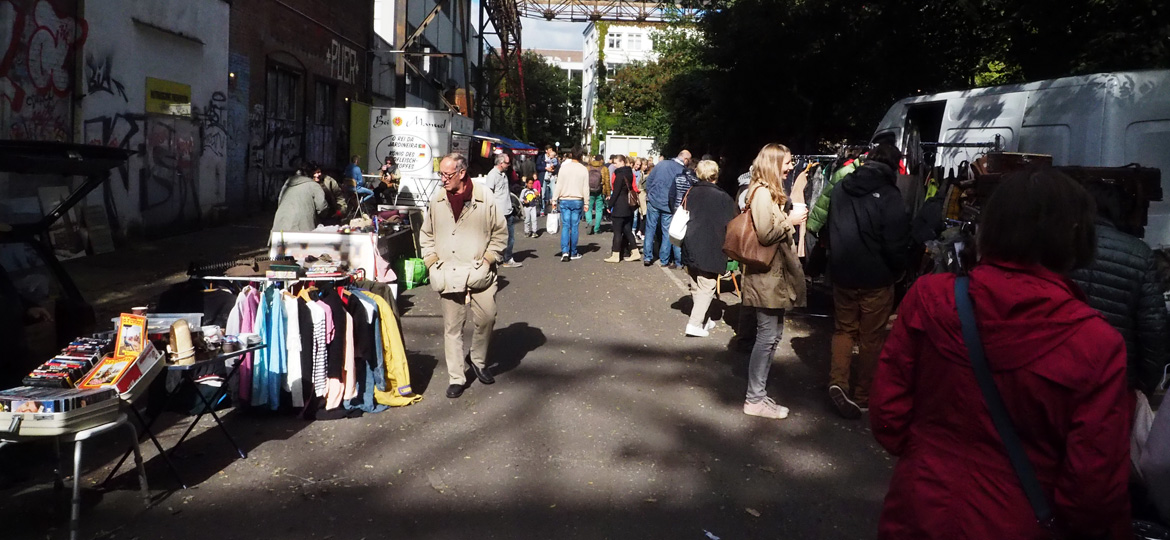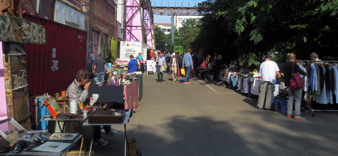 ...Zum ersten Mal seit 1998 fand auf Kampnagel zu Ostern 2009 wieder der legendäre und weit über Hamburgs Grenzen hinaus beliebte Antik- und Flohmarkt statt. Auch in diesem Jahr können alle Anlieger, Freunde der Kulturfabrik, Mitarbeiter und Jedermann/Frau, die etwas von ihrem Habe oder überflüssiges Gedöns loswerden wollen, in der Vorhalle K6 und einmal um die Hallen der Kulturfabrik herum, auf dem Außengelände, "schöner trödeln".